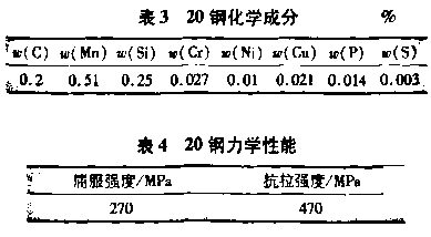 20钢管执行标准为08/1 8163—1999《输送流体用无缝钢管》,规格为如114x7mm。20 钢的化学成分及力学性能见表3、表4。